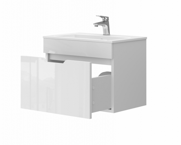 Тумба для ванної з умивальником St1-60 підвісна Stefania Ювента - гармонійний союз стилю та раціональності, для облаштування ванної кімнати. Тумба допоможе раціонально використовувати простір під раковиною і покращує естетичний вигляд в цілому. Тумба комплектується керамічним умивальником «Practico-60», виробник «Sanovit», Туреччина і має одну висувну шухляду, яка дозволяє зручно розкласти всілякі гелі, креми, рушники та інші речі, заховати побутову хімію, приховуючи їх від оточуючих. Ви можете укомплектувати тумбу сифоном «Нептун» Н0410, який ідеально підходить для відводу води у відповідності з особливостями конструкції тумби. Тумба привертає увагу білим глянцем; легким, повітряним дизайном; відсутністю ручок їх функцію виконують вифрезеровані на фасадах виїмки; підвісним монтажем - кріплення до стіни; напрямними з функцією самодотягування часткового висування, виробник Hettich. Завдяки меблям Stefania Juventa Ви підберете те, що підкреслить дизайн вашої ванної і чудово буде виглядатиме довгі роки.