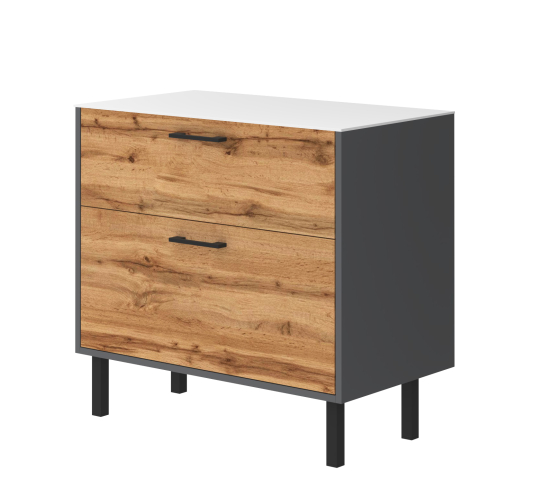 Тумба для ванної зі стільницею HPL 80 Afina антрацит / дуб вотан Ювента в елегантному та сучасному дизайні, що поєднують природні та індустріальні мотиви, перетворюючи вашу ванну кімнату на справжній витвір мистецтв, де кожен елемент продуманий до дрібниць, щоб дарувати вам задоволення щодня. Тумба зі стільницею з вологостійкого матеріалу HPL товщиною 6 мм (без отвору під умивальник, що підходить для будь-якого накладного умивальника) і в своїй конструкції має дві шухляди, які виготовлені з ламінованого ДСП товщиною 16 мм та встановлені на направляючі з функцією самодотягування часткового висування, Hafele. При цьому верхня шухляда має висоту 240 мм, а нижня шухляда вища, 334 мм, що дозволить вам зберігати всередині неї різну побутову хімію у високих пляшках. Також в конструкції тумби передбачено загальноприйняте та гармонізоване з усіма європейськими стандартами підведення та відведення води. З комплектом меблів для ванної Afina антрацит / дуб вотан Ювента ваша ванна кімната стане місцем, де практичність зустрічається з елегантністю, а кожен день сповнений комфортом і стилем. Дозвольте собі розкіш і функціональність, які надихають.