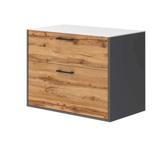Опис Тумба для ванної зі стільницею HPL 80 Afina антрацит / дуб вотан Ювента