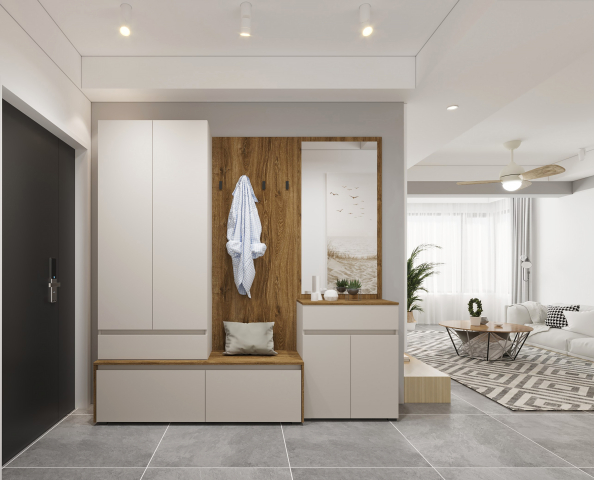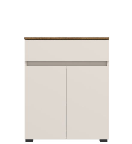 Тумба KOM2D1S Ансі Gerbor - стильний акцент модульної передпокою, що поєднує мінімалістичний дизайн і продуманий функціонал. Тумба містить один висувний ящик і одне закрите відділення. За двома дверцятами розташована одна полиця, що дозволяє зручно організувати зберігання повсякденних речей. Чіткі геометричні форми, гладкі фасади з витонченими фрезерованими виїмками замість ручок і тепле поєднання відтінків дуба травіата і кашеміру формують образ, в якому естетика зустрічається з практичністю. Надійні кулькові напрямні HAFELE і петлі SLIDE-ON HETTICH забезпечують плавність і тишу у використанні. Стійкість конструкції гарантують пластикові ніжки Etera Plast SCHWIN, які також полегшують догляд за меблями. Тумба стане гармонійним доповненням передпокою, додаючи простору відчуття затишку, легкості і сучасного стилю. Ансі Gerbor — передпокій, який зустрічає м'яким відчуттям порядку і ясності, немов запрошуючи на мить зупинитися, і ідеально підійде тим, хто цінує витончений смак і стриманий стиль без зайвої розкоші.