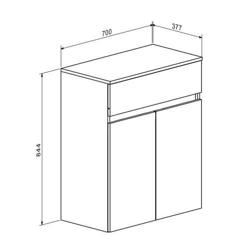 тумба містить одну висувну шухляду та одне закрите відділення з поличкою всередині |