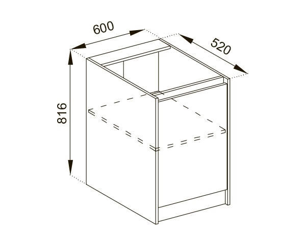 тумба нижня з одними дверцятами, містить одне закрите відділення з полицею всередині |