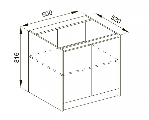 тумба нижня дводверна містить одне закрите відділення з полицею всередині |