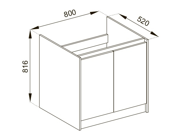 тумба нижня дводверна містить одне закрите відділення, зверху добре розміститися чаша необхідної ємності |
