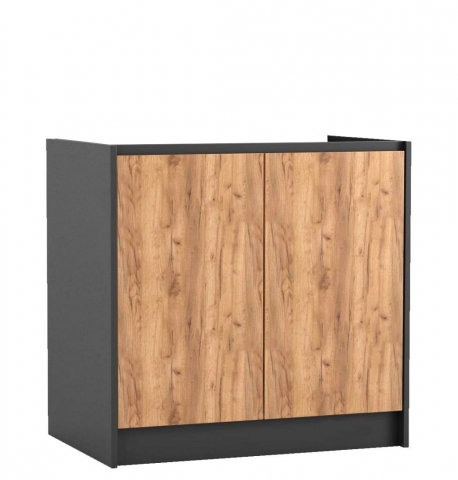 Нижня тумба Н80М кухня Графіті Світ Меблів є чудовим дизайнерським рішенням у стилі лофт з енергетикою брутальної практичності, красою натуральних матеріалів та при цьому 100 відсотків функціональністю в інтер'єрі. Тумба нижня обладнана двома дверцятами з одним закритим відділенням, де можна зберігати різні хімічні засоби по догляду за кухнею, великий посуд та інші предмети, а також підійде для того, щоб розмістити зверху чашу необхідної ємності. Корпус та фасади виготовляються з якісного ламінованого ДСП з використанням натуральних кольорів та фактур у поєднанні графітового корпусу та фасадів у кольорі дуб крафт золотий. Кухня Графіті Світ Меблів допоможе отримати оригінальний інтер'єр кухні, на перший погляд, грубуватий, але водночас затишний та практичний. Кухня в стилі лофт відмінно підійде тим, хто втомився від шаблонних інтер'єрів.