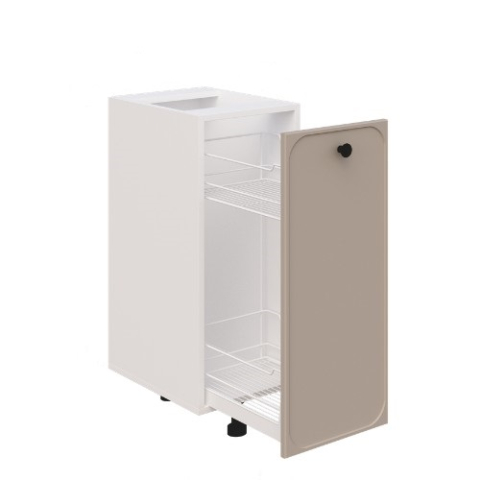 Нижня кухонна тумба Карго Н20 кухня Сью Світ Меблів - компактний і функціональний модуль, який допомагає раціонально використовувати вузький простір кухні, додаючи зручності у повсякденних справах та зберігаючи охайний, продуманий зовнішній вигляд гарнітура. Конструкція оснащена висувною системою карго з металевими кошиками та направляючими повного висування, завдяки чому вміст легко переглядається і завжди знаходиться під рукою. Такий формат ідеально підходить для зберігання пляшок, спецій, соусів та інших кухонних дрібниць, які важливо тримати в порядку і швидко знаходити під час приготування. Стільниця комплектується та продається окремо. Додатково до тумби можна замовити цокольні планки, які запобігають потраплянню вологи та бруду, або регульовані ніжки кольору алюмінію замість царги. Корпус виконаний з якісного ламінованого ДСП у відтінках «білий», «дуб сонома», «попелястий», «графіт» і «дуб крафт золотий», а фасади з фарбованого МДФ доступні в широкій палітрі кольорів «білий шовк», «пломбір», «айворі», «мокко», «лате», «сірий оксамит», «попіл», «світла м'ята», «блакитний лід», «морська бірюза», «аквамарин темний», «синій електрик», «м'ята», «насичена оливка», «балі зелений», «жовтий промінь», «лаванда», «графіт» і «капучино», що дозволяє легко підібрати модуль в єдиному стилі кухні. Делікатно заокруглена рамка фасаду додає м'якості лініям, а матова ручка-кнопка в чорному кольорі підкреслює сучасний характер і акуратно розставляє контрастні акценти. Кухня Сью Світ Меблів - простір, де кожен елемент працює на відчуття легкості, порядку і тихого, повсякденного комфорту.