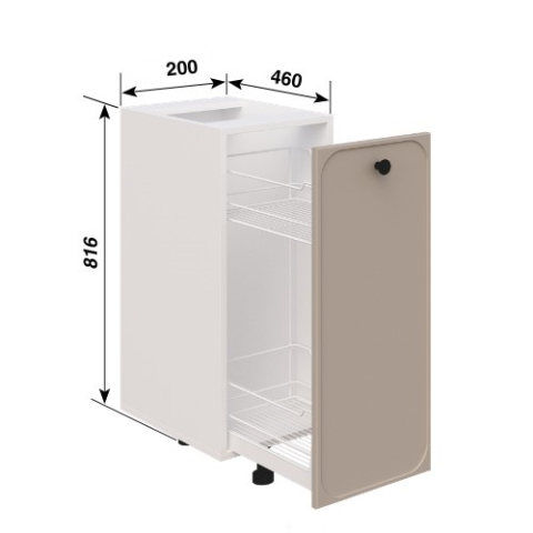 Нижня кухонна тумба Карго Н20 Lux кухня Сью Світ Меблів - компактний і функціональний модуль, який допомагає раціонально використовувати вузький простір кухні, додаючи зручності у повсякденних справах та зберігаючи охайний, продуманий зовнішній вигляд гарнітура. Конструкція оснащена висувною системою карго з металевими кошиками та телескопічними напрямними повного висунення Lux, завдяки чому вміст легко переглядається і завжди знаходиться під рукою. Такий формат ідеально підходить для зберігання пляшок, спецій, соусів та інших кухонних дрібниць, які важливо тримати в порядку і швидко знаходити під час приготування. Стільниця комплектується та продається окремо. Додатково до тумби можна замовити цокольні планки, які запобігають потраплянню вологи та бруду, або регульовані ніжки кольору алюмінію замість царги. Корпус виконаний з якісного ламінованого ДСП у відтінках «білий», «дуб сонома», «попелястий», «графіт» і «дуб крафт золотий», а фасади з фарбованого МДФ доступні в широкій палітрі кольорів «білий шовк», «пломбір», «айворі», «мокко», «лате», «сірий оксамит», «попіл», «світла м'ята», «блакитний лід», «морська бірюза», «аквамарин темний», «синій електрик», «м'ята», «насичена оливка», «балі зелений», «жовтий промінь», «лаванда», «графіт» і «капучино», що дозволяє легко підібрати модуль в єдиному стилі кухні. Делікатно заокруглена рамка фасаду додає м'якості лініям, а матова ручка-кнопка в чорному кольорі підкреслює сучасний характер і акуратно розставляє контрастні акценти. Кухня Сью Світ Меблів - простір, де кожен елемент працює на відчуття легкості, порядку і тихого, повсякденного комфорту.