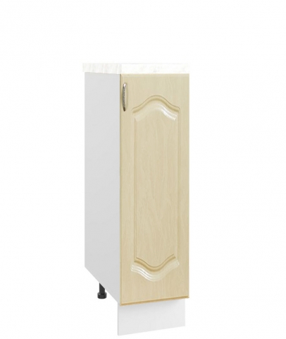 Кухонна тумба нижня карго Н30 кухні Оля Світ Меблів — оснащена висувним кошиком, дозволивши зберігання пляшок та інших необхідних дрібниць на кухні. Корпус виготовляється з високоякісного ламінованого ДСП товщиною 16 мм у популярних колірних рішеннях корпусу: «білий», «дуб сонома», «графіт», «попелястий» та «дуб крафт золотий» з фасадами з високоякісного МДФ товщиною 16 мм у сміливих кольорових рішеннях на вибір: "біле дерево", "біле золото", "білий", "білий оксид", "білий супермат", "венге світлий", "венге темний", "блакитна лагуна", "графіт", "дуб сонома", "дуб трюфель", "клен", "льон", "горіх", "яблуня". Тумба привертає увагу свіжістю та елегантністю; декорованими різьбленими малюнками з плавними лініями; подовженими пластиковими ручками P-02/96 кольору сатин. Кухня Оля Світ Меблів стане справжнім місцем натхнення для приготування вишуканих страв щодня.
