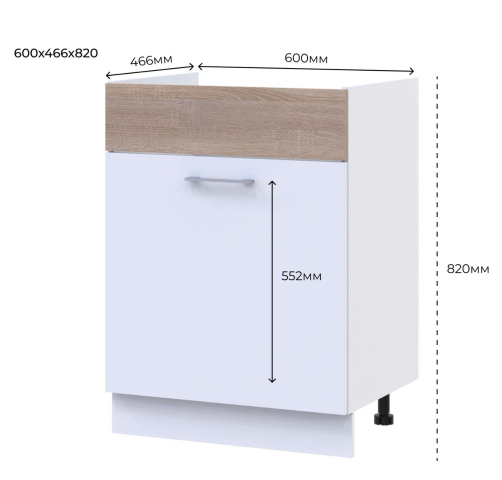 Кухонна тумба нижня під мийку НМ82_Ш60 кухня Лея Doros - це не просто меблі, а практичне і стильне рішення для створення акуратного і функціонального простору на вашій кухні. Тумба послужить ідеальним місцем для встановлення кухонної мийки, акуратно приховуючи всі труби і шланги, необхідні для подачі води і відведення стоків, а всередині тумби можна розмістити відро для сміття, побутову хімію, губки і ганчірки, щоб все необхідне для прибирання завжди було під рукою, але не порушувало гармонію простору. Кухонна тумба НМ82_Ш60 кухня Лея Doros не тільки забезпечує практичність, а й допоможе створити затишну й організовану кухню, де кожен елемент продуманий до дрібниць. Кухня Лея Doros ідеально підійде для сучасних інтер'єрів, оформлених у стилі мінімалізму, скандинавському або еко-стилі, ставши центром тяжіння у вашій оселі, роблячи приготування їжі та проведення часу на кухні максимально приємними.