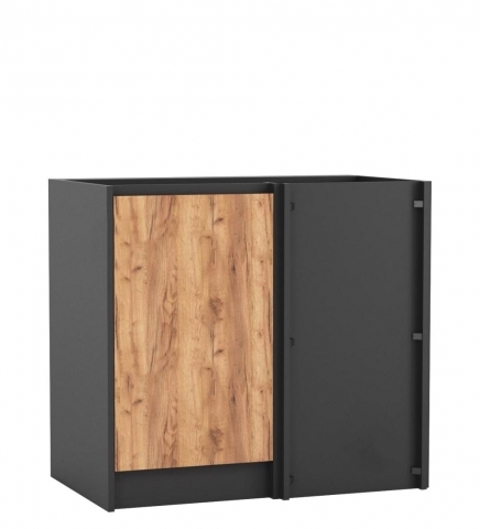 Нижня тумба Н100 лівостороння кухня Графіті Світ Меблів є чудовим дизайнерським рішенням у стилі лофт з енергетикою брутальної практичності, красою натуральних матеріалів та при цьому 100 відсотків функціональністю в інтер'єрі. Тумба нижня з однією дверкой і глухим фасадом, містить одне закрите відділення з полицею всередині, чудово підійде для зберігання важких і об'ємних речей - всього того, що складно діставати з верхніх полиць. Стільниця комплектується та продається окремо. Корпус та фасади виготовляються з якісного ламінованого ДСП з використанням натуральних кольорів та фактур у поєднанні графітового корпусу та фасадів у кольорі дуб крафт золотий. Кухня Графіті Світ Меблів допоможе отримати оригінальний інтер'єр кухні, на перший погляд, грубуватий, але водночас затишний та практичний. Кухня в стилі лофт відмінно підійде тим, хто втомився від шаблонних інтер'єрів.