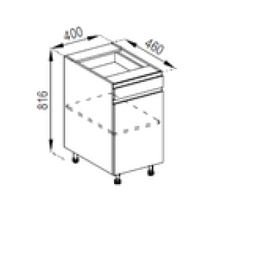 Нижня кухонна тумба Н40ДШ LUX кухня Влада Світ Меблів стане вигідним рішенням та створить у приміщенні досить гармонійний та оригінальний дизайн, при цьому простір кухні стане більш зручним, комфортним та практичним, що важливо для дизайну кухонного простору та створення зони вільного пересування. Тумба нижня оснащена одним закритим відділенням з поличкою всередині та однією висувною шухлядою з телескопічними направляючими повного висування, що чудово підійде для зберігання кухонного начиння різного розміру, сковорід, кухонної техніки та інших великогабаритних та важких предметів. Стільниця комплектується та продається окремо. Додатково до тумби можна замовляти цокольні планки, які запобігають попаданню вологи та бруду, або регульовані ніжки у кольорі алюміній замість царги. Корпус виготовляється з якісного ламінованого ДСП у популярних кольорових рішеннях на вибір «білий», «дуб сонома», «графіт», «попелястий» та «дуб крафт золотий» з фасадами з фарбованого МДФ у кольорових рішеннях на вибір «айворі», «аквамарин темний», «балі зелений», «білий шовк», «графіт», «капучіно», «кораловий», «червоний», «лаванда», «м'ята», «нефрит», «пломбірі», «пудровий», «сірий оксамит», «шоколад». Кухня Влада Світ Меблів допоможе облаштувати кухню Вашої мрії, максимально ефективно використовуючи наявний простір.