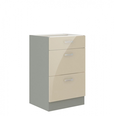 Кухонна тумба нижня Н40Ш кухні Марта глянець Світ Меблів — оснащена трьома висувними шухлядами з роликовими направляючими, де можна розмістити різне кухонне приладдя. Виготовляється з якісного ламінованого ДСП товщиною 16 мм у поєднанні на вибір - корпусу: «білий», «дуб сонома», «графіт», «попелястий» та «дуб золотий крафт» з глянцевими фасадами «артвуд світлий глянець», «білий глянець», «бетон темний глянець», «графіт глянець», «дакар глянець», «дуб артізан глянець», «дуб борас глянець», «дуб сонома глянець», «дуб трюфель глянець», «дуб енгрейн необроблений глянець», «індастріал глянець», «індиго глянець», «капучино глянець», «крем глянець», «лайм глянець», «лемонграс глянець», «попелястий глянець», «світлий беж глянець», «вугільний камінь глянець», «чорний глянець», «шовковий камінь глянець». Кухня Марта Світ Меблів – унікальний та універсальний кухонний гарнітур, який дозволить створити кухню своєї мрії.