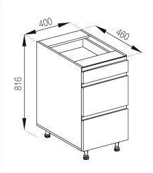Нижня кухонна тумба Н40Ш кухня Тіна Світ Меблів стане вигідним рішенням та створить у приміщенні досить гармонійний та оригінальний дизайн, при цьому простір кухні стане більш зручним, комфортним та практичним, що важливо для дизайну кухонного простору та створення зони вільного пересування. Тумба нижня містить три висувні шухляди з роликовими направляючими, що чудово підійде для зберігання різної кухонного приладдя - різних столових приладів, посуду або інгредієнтів. Стільниця комплектується та продається окремо. Додатково до тумби можна замовляти цокольні планки, які запобігають попаданню вологи та бруду, або регульовані ніжки у кольорі алюміній замість царги. Корпус виготовляється з якісного ламінованого ДСП Kronospan товщиною 16 мм у популярних кольорових рішеннях на вибір «білий», «дуб сонома», «графіт», «попелястий» та «дуб крафт золотий» з фасадами з якісного ламінованого ДСП Kronospan товщиною 18 мм у кольорових рішеннях на вибір «ательє світлий», «білий», «глиняний сірий», «дуб королівський», «дуб сільверджек вінтажний», «зелений димчастий», «іриска», «кашемір», «сахара», «сіра мишка», «сутінковий блакитний». Тіна Світ Меблів це спосіб надати вашій кухні неперевершеної елегантності та стилю, ставши чудовою основою для створення теплого та затишного оточення у вашому будинку.