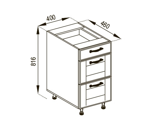 Нижня тумба Н40Ш LUX кухня Домініка Світ Меблів елемент нижнього ярусу модульної кухні, підійде для зберігання різної кухонного приладдя - різних столових приладів, посуду або інгредієнтів. Тумба нижня містить три висувні шухляди з телескопічними направляючими повного висування. Стільниця комплектується та продається окремо. Додатково до тумби можна замовляти цокольні планки, які запобігають попаданню вологи та бруду, або регульовані ніжки у кольорі алюміній замість царги. Корпус виготовляється з якісного ламінованого ДСП у популярних кольорових рішеннях на вибір «білий», «дуб сонома», «графіт», «попелястий» та «дуб крафт золотий» з фасадами із МДФ у кольорових рішеннях на вибір «аквамарин темний», «сірий оксамит» та «білий шовк». Кухня Домініка Світ Меблів допоможе створити ідеальний варіант для Вашого інтер'єру.