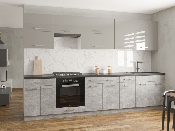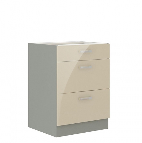 Кухонна тумба нижня Н60 3Ш (1+2) кухні Марта глянець Світ Меблів — оснащена трьома висувними шухлядами з роликовими направляючими, де можна розмістити різне кухонне приладдя. Виготовляється з якісного ламінованого ДСП товщиною 16 мм у поєднанні на вибір - корпусу: «білий», «дуб сонома», «графіт», «попелястий» та «дуб золотий крафт» з глянцевими фасадами «артвуд світлий глянець», «білий глянець», «бетон темний глянець», «графіт глянець», «дакар глянець», «дуб артізан глянець», «дуб борас глянець», «дуб сонома глянець», «дуб трюфель глянець», «дуб енгрейн необроблений глянець», «індастріал глянець», «індиго глянець», «капучино глянець», «крем глянець», «лайм глянець», «лемонграс глянець», «попелястий глянець», «світлий беж глянець», «вугільний камінь глянець», «чорний глянець», «шовковий камінь глянець». Кухня Марта Світ Меблів – унікальний та універсальний кухонний гарнітур, який дозволить створити кухню своєї мрії.