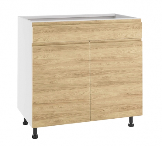 Нижня кухонна тумба Н60ДШ LUX кухня Тіна Світ Меблів стане вигідним рішенням та створить у приміщенні досить гармонійний та оригінальний дизайн, при цьому простір кухні стане більш зручним, комфортним та практичним, що важливо для дизайну кухонного простору та створення зони вільного пересування. Тумба нижня обладнана двома дверцятами з одним закритим відділенням з поличкою всередині та однією висувною шухлядою з телескопічними направляючими повного висування, що чудово підійде для зберігання кухонного начиння різного розміру, сковорід, кухонної техніки та інших великогабаритних та важких предметів. Стільниця комплектується та продається окремо. Додатково до тумби можна замовляти цокольні планки, які запобігають попаданню вологи та бруду, або регульовані ніжки у кольорі алюміній замість царги. Корпус виготовляється з якісного ламінованого ДСП Kronospan товщиною 16 мм у популярних кольорових рішеннях на вибір «білий», «дуб сонома», «графіт», «попелястий» та «дуб крафт золотий» з фасадами з якісного ламінованого ДСП Kronospan товщиною 18 мм у кольорових рішеннях на вибір «ательє світлий», «білий», «глиняний сірий», «дуб королівський», «дуб сільверджек вінтажний», «зелений димчастий», «іриска», «кашемір», «сахара», «сіра мишка», «сутінковий блакитний». Тіна Світ Меблів це спосіб надати вашій кухні неперевершеної елегантності та стилю, ставши чудовою основою для створення теплого та затишного оточення у вашому будинку.