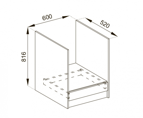 тумба нижня для духовки містить відкрите відділення, внизу розташована одна висувна шухляда |