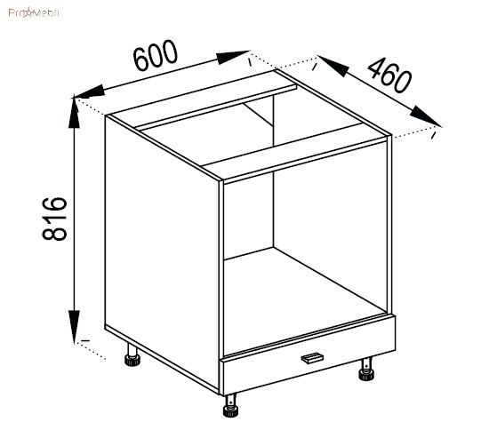 тумба нижня для духовки містить відкрите відділення, внизу розташована одна висувна шухляда |