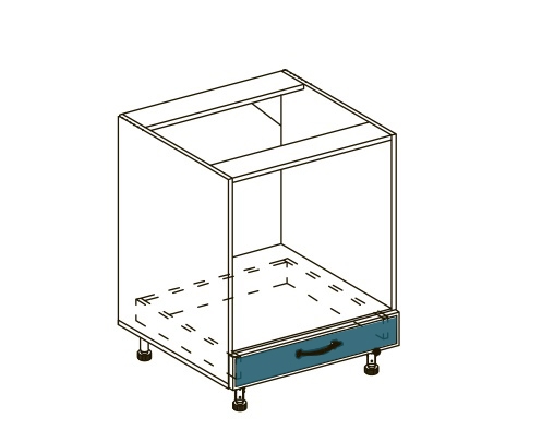 тумба нижня для духовки містить відкрите відділення, внизу розташована одна висувна шухляда |