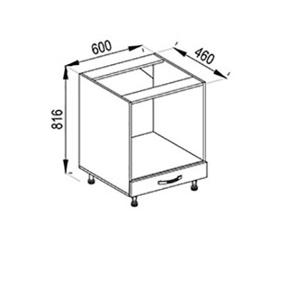 тумба нижня для духовки містить відкрите відділення, внизу розташована одна висувна шухляда |