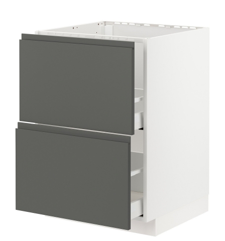 Нижня кухонна тумба Н60Ш кухня Влада Світ Меблів стане вигідним рішенням та створить у приміщенні досить гармонійний та оригінальний дизайн, при цьому простір кухні стане більш зручним, комфортним та практичним, що важливо для дизайну кухонного простору та створення зони вільного пересування. Тумба нижня містить дві висувні шухляди з роликовими направляючими, чудово підійде для зберігання різної кухонного приладдя - різних столових приладів, посуду або інгредієнтів. Стільниця комплектується та продається окремо. Додатково до тумби можна замовляти цокольні планки, які запобігають попаданню вологи та бруду, або регульовані ніжки у кольорі алюміній замість царги. Корпус виготовляється з якісного ламінованого ДСП у популярних кольорових рішеннях на вибір «білий», «дуб сонома», «графіт», «попелястий» та «дуб крафт золотий» з фасадами з фарбованого МДФ у кольорових рішеннях на вибір «айворі», «аквамарин темний», «балі зелений», «білий шовк», «графіт», «капучіно», «кораловий», «червоний», «лаванда», «м'ята», «нефрит», «пломбірі», «пудровий», «сірий оксамит», «шоколад». Кухня Влада Світ Меблів допоможе облаштувати кухню Вашої мрії, максимально ефективно використовуючи наявний простір.
