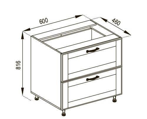 Нижня тумба Н60Ш LUX кухня Домініка Світ Меблів елемент нижнього ярусу модульної кухні, підійде для зберігання різної кухонного приладдя - різних столових приладів, посуду або інгредієнтів. Тумба нижня містить дві висувні шухляди з телескопічними направляючими повного висування. Стільниця комплектується та продається окремо. Додатково до тумби можна замовляти цокольні планки, які запобігають попаданню вологи та бруду, або регульовані ніжки у кольорі алюміній замість царги. Корпус виготовляється з якісного ламінованого ДСП у популярних кольорових рішеннях на вибір «білий», «дуб сонома», «графіт», «попелястий» та «дуб крафт золотий» з фасадами із МДФ у кольорових рішеннях на вибір «аквамарин темний», «сірий оксамит» та «білий шовк». Кухня Домініка Світ Меблів допоможе створити ідеальний варіант для Вашого інтер'єру.