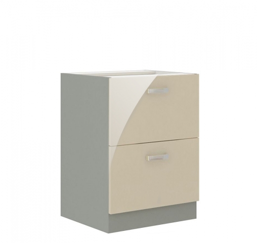 Кухонна тумба нижня Н60Ш LUX кухні Марта глянець Світ Меблів — оснащена двома висувними шухлядами з телескопічними направляючими повного висування, де можна розмістити різне кухонне приладдя. Виготовляється з якісного ламінованого ДСП товщиною 16 мм у поєднанні на вибір - корпусу: «білий», «дуб сонома», «графіт», «попелястий» та «дуб золотий крафт» з глянцевими фасадами «артвуд світлий глянець», «білий глянець», «бетон темний глянець», «графіт глянець», «дакар глянець», «дуб артізан глянець», «дуб борас глянець», «дуб сонома глянець», «дуб трюфель глянець», «дуб енгрейн необроблений глянець», «індастріал глянець», «індиго глянець», «капучино глянець», «крем глянець», «лайм глянець», «лемонграс глянець», «попелястий глянець», «світлий беж глянець», «вугільний камінь глянець», «чорний глянець», «шовковий камінь глянець». Кухня Марта Світ Меблів – унікальний та універсальний кухонний гарнітур, який дозволить створити кухню своєї мрії.