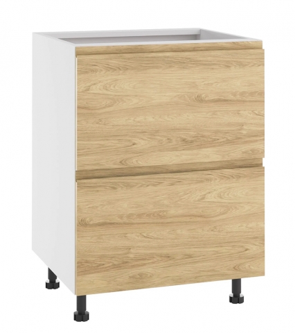 Нижня кухонна тумба Н60Ш LUX кухня Тіна Світ Меблів стане вигідним рішенням та створить у приміщенні досить гармонійний та оригінальний дизайн, при цьому простір кухні стане більш зручним, комфортним та практичним, що важливо для дизайну кухонного простору та створення зони вільного пересування. Тумба нижня містить дві висувні шухляди з телескопічними направляючими повного висування, чудово підійде для зберігання різної кухонного приладдя - різних столових приладів, посуду або інгредієнтів. Стільниця комплектується та продається окремо. Додатково до тумби можна замовляти цокольні планки, які запобігають попаданню вологи та бруду, або регульовані ніжки у кольорі алюміній замість царги. Корпус виготовляється з якісного ламінованого ДСП Kronospan товщиною 16 мм у популярних кольорових рішеннях на вибір «білий», «дуб сонома», «графіт», «попелястий» та «дуб крафт золотий» з фасадами з якісного ламінованого ДСП Kronospan товщиною 18 мм у кольорових рішеннях на вибір «ательє світлий», «білий», «глиняний сірий», «дуб королівський», «дуб сільверджек вінтажний», «зелений димчастий», «іриска», «кашемір», «сахара», «сіра мишка», «сутінковий блакитний». Тіна Світ Меблів це спосіб надати вашій кухні неперевершеної елегантності та стилю, ставши чудовою основою для створення теплого та затишного оточення у вашому будинку.