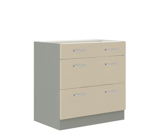 Кухонна тумба нижня Н80 3Ш (1+2) LUX кухні Марта Світ Меблів — оснащена трьома висувними шухлядами з телескопічними направляючими повного висування, де можна розмістити різне кухонне приладдя. Виготовляється з якісного ламінованого ДСП товщиною 16 мм у поєднанні на вибір - корпусу: «білий», «дуб сонома», «графіт», «попелястий» та «дуб золотий крафт» з фасадами «артвуд світлий», «білий», «бетон темний», «графіт», «дакар», «дуб артізан», «дуб борас», «дуб сонома», «дуб трюфель», «дуб енгрейн необроблений», «індастріал», «індиго», «капучино», «крем», «лайм», «лемонграс», «попелястий», «світлий беж», «вугільний камінь», «чорний», «шовковий камінь». Кухня Марта Світ Меблів – унікальний та універсальний кухонний гарнітур, який дозволить створити кухню своєї мрії.