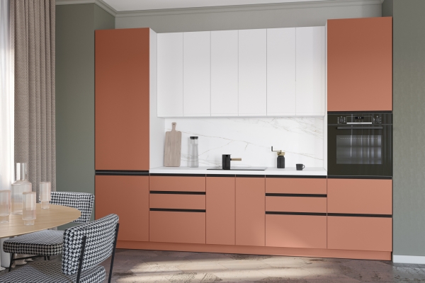 на вибір інтегрований J-профіль: чорна та дуб сонома поєднується з будь-яким із запропонованих фасадів; біла поєднується тільки з білим фасадом і дуб королівський |