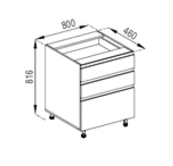 Нижня кухонна тумба Н80 3Ш (2+1) кухня Влада Світ Меблів стане вигідним рішенням та створить у приміщенні досить гармонійний та оригінальний дизайн, при цьому простір кухні стане більш зручним, комфортним та практичним, що важливо для дизайну кухонного простору та створення зони вільного пересування. Тумба нижня містить три висувні шухляди з роликовими направляючими, чудово підійде для зберігання різної кухонного приладдя - різних столових приладів, посуду або інгредієнтів. Стільниця комплектується та продається окремо. Додатково до тумби можна замовляти цокольні планки, які запобігають попаданню вологи та бруду, або регульовані ніжки у кольорі алюміній замість царги. Корпус виготовляється з якісного ламінованого ДСП у популярних кольорових рішеннях на вибір «білий», «дуб сонома», «графіт», «попелястий» та «дуб крафт золотий» з фасадами з фарбованого МДФ у кольорових рішеннях на вибір «айворі», «аквамарин темний», «балі зелений», «білий шовк», «графіт», «капучіно», «кораловий», «червоний», «лаванда», «м'ята», «нефрит», «пломбірі», «пудровий», «сірий оксамит», «шоколад». Кухня Влада Світ Меблів допоможе облаштувати кухню Вашої мрії, максимально ефективно використовуючи наявний простір.