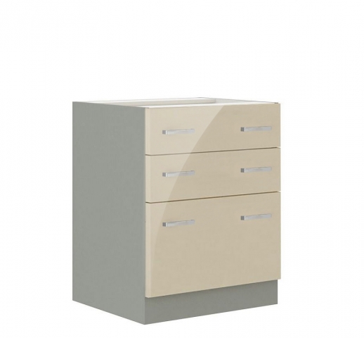 Кухонна тумба нижня Н80 3Ш (2+1) LUX кухні Марта глянець Світ Меблів — оснащена трьома висувними шухлядами з телескопічними направляючими повного висування, де можна розмістити різне кухонне приладдя. Виготовляється з якісного ламінованого ДСП товщиною 16 мм у поєднанні на вибір - корпусу: «білий», «дуб сонома», «графіт», «попелястий» та «дуб золотий крафт» з глянцевими фасадами «артвуд світлий глянець», «білий глянець», «бетон темний глянець», «графіт глянець», «дакар глянець», «дуб артізан глянець», «дуб борас глянець», «дуб сонома глянець», «дуб трюфель глянець», «дуб енгрейн необроблений глянець», «індастріал глянець», «індиго глянець», «капучино глянець», «крем глянець», «лайм глянець», «лемонграс глянець», «попелястий глянець», «світлий беж глянець», «вугільний камінь глянець», «чорний глянець», «шовковий камінь глянець». Кухня Марта Світ Меблів – унікальний та універсальний кухонний гарнітур, який дозволить створити кухню своєї мрії.