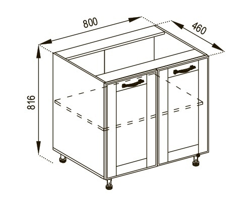 тумба нижня дводверна, містить одне закрите відділення з полицею всередині |
