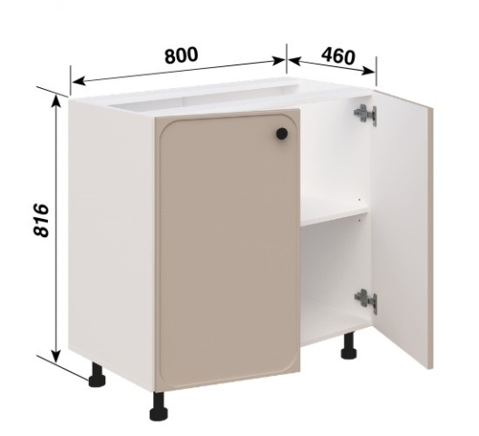 Нижня тумба Н80 для кухні Сью від Світ Меблів - компактний і продуманий модуль, який легко вписується в кухонну композицію, додаючи їй охайності та функціональної завершеності. Її лаконічна форма та спокійна геометрія роблять простір більш організованим, а повсякденне використання - зручним і зрозумілим. Конструкція передбачає одне закрите відділення з внутрішньою полицею, де зручно розмістити посуд, кухонну техніку, сковорідки або більш габаритні предмети, які важливо тримати під рукою, але поза відкритим оглядом. Таке рішення допомагає підтримувати порядок і візуальну чистоту на кухні. Стільниця комплектується та продається окремо. Додатково модуль може комплектуватися цокольними планками для захисту від вологи та забруднень або встановлюватися на регульовані ніжки в кольорі алюмінію замість царги, що спрощує монтаж і робить конструкцію більш гнучкою. Корпус виконаний з якісного ламінованого ДСП у відтінках «білий», «дуб сонома», «попелястий», «графіт» і «дуб крафт золотий», а фасади з фарбованого МДФ доступні в широкій палітрі кольорів «білий шовк», «пломбір», «айворі», «мокко», «лате», «сірий оксамит», «попіл», «світла м'ята», «блакитний лід», «морська бірюза», «аквамарин темний», «синій електрик», «м'ята», «насичена оливка», «балі зелений», «жовтий промінь», «лаванда», «графіт» і «капучино», що дозволяє легко підібрати модуль в єдиному стилі кухні. Делікатно заокруглена рамка фасаду додає м'якості лініям, а матова ручка-кнопка в чорному кольорі підкреслює сучасний характер і акуратно розставляє контрастні акценти. Кухня Сью Світ Меблів - простір, де кожен елемент працює на відчуття легкості, порядку і тихого, повсякденного комфорту.