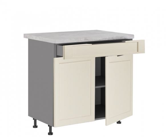 Нижня кухонна тумба Н80ДШ кухня Анна Світ Меблів допоможе грамотно спланувати кухонний простір: і вільного місця буде більше, і господині зручно готувати та сформує додаткову зону для зберігання кухонного інвентарю на кухні. Дана конструкція оснащена двома дверцятами з одним закритим відділенням з поличкою всередині та однією висувною шухлядою з роликовими направляючими, де можна розмістити різне кухонне приладдя, посуд, техніку і багато чого іншого. Стільниця комплектується та продається окремо. Додатково до тумби можна замовляти цокольні планки, які запобігають попаданню вологи та бруду, або регульовані ніжки у кольорі алюміній замість царги. Корпус виготовляється з якісного ламінованого ДСП у популярних кольорових рішеннях на вибір «білий», «дуб сонома», «графіт», «попелястий» та «дуб крафт золотий» з фасадами з фарбованого МДФ у кольорових рішеннях на вибір «айворі», «аквамарин темний», «балі зелений», «білий шовк», «графіт», «капучіно», «кораловий», «червоний», «лаванда», «м'ята», «нефрит», «пломбірі», «пудровий», «сірий оксамит», «шоколад». Унікальна кухня Анна Світ Меблів дозволить Вам спроектувати кухню, використовуючи її потенціал таким чином, щоб повсякденне приготування їжі приносило задоволення.