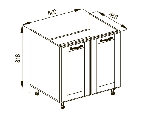 тумба нижня під мийку дводверна, містить одне закрите відділення |
