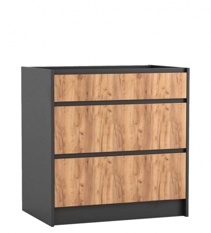 Нижня тумба Н80Ш кухня Графіті Світ Меблів є чудовим дизайнерським рішенням у стилі лофт з енергетикою брутальної практичності, красою натуральних матеріалів та при цьому 100 відсотків функціональністю в інтер'єрі. Тумба нижня містить три висувні шухляди з телескопічними направляючими повного висування та чудово підійде для зберігання різної кухонного приладдя - різних столових приладів, посуду або інгредієнтів. Стільниця комплектується та продається окремо. Корпус та фасади виготовляються з якісного ламінованого ДСП з використанням натуральних кольорів та фактур у поєднанні графітового корпусу та фасадів у кольорі дуб крафт золотий. Кухня Графіті Світ Меблів допоможе отримати оригінальний інтер'єр кухні, на перший погляд, грубуватий, але водночас затишний та практичний. Кухня в стилі лофт відмінно підійде тим, хто втомився від шаблонних інтер'єрів.