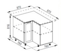 тумба нижня кутова, містить одне закрите відділення з полицею всередині |