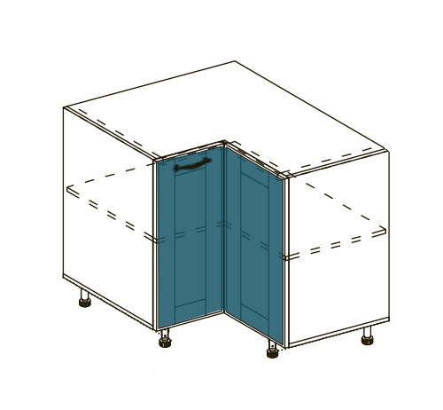 тумба нижня кутова, містить одне закрите відділення з полицею всередині |
