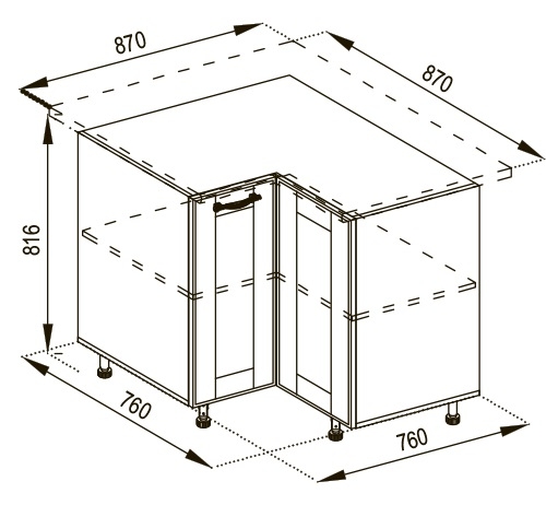 тумба нижня кутова, містить одне закрите відділення з полицею всередині |