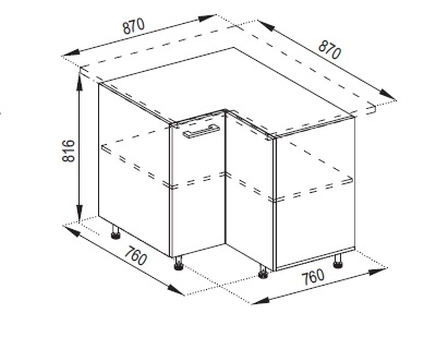 тумба нижня кутова, містить одне закрите відділення з полицею всередині |