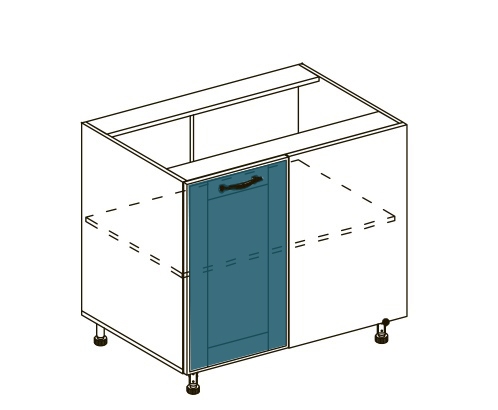 Нижня тумба Н97 кухня Домініка Світ Меблів елемент нижнього ярусу модульної кухні, чудово підійде для зберігання важких і об'ємних речей - всього того, що складно діставати з верхніх полиць. Тумба нижня з однією дверкой і глухим фасадом, містить одне закрите відділення з полицею всередині, для зберігання каструль різного розміру, сковорідок, кухонної техніки (наприклад, комбайну або соковитискача) і інших великогабаритних і важких предметів. Стільниця комплектується та продається окремо. Додатково до тумби можна замовляти цокольні планки, які запобігають попаданню вологи та бруду, або регульовані ніжки у кольорі алюміній замість царги. Корпус виготовляється з якісного ламінованого ДСП у популярних кольорових рішеннях на вибір «білий», «дуб сонома», «графіт», «попелястий» та «дуб крафт золотий» з фасадами із МДФ у кольорових рішеннях на вибір «аквамарин темний», «сірий оксамит» та «білий шовк». Кухня Домініка Світ Меблів допоможе створити ідеальний варіант для Вашого інтер'єру.