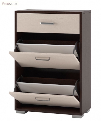 Висока тумба для взуття венге Світ Меблів - незамінна супутниця інтер'єру передпокою, яка допоможе організувати систему зберігання повсякденного взуття, звільнивши простір і прикрасивши інтер'єр. Тумба містить два закритих відділення з відкидними дверцятами, що дозволяє розмістити велику кількість чобіт, туфель, босоніжок та іншого взуття, а також одну висувну шухляду для необхідних дрібниць. Корпус і фасадні частини виготовляються з високоякісного ламінованого ДСП в контрастному поєднанні венге світлий з венге темним. Тумба привертає увагу продуманим до дрібниць дизайном; поєднанням світлих і темних відтінків; якісними пластиковими ручками довгастої форми; стійкими ніжками; фірмовими комплектуючими. Тумба для взуття Світ Меблів комфортна і містка, є відмінною системою зберігання.