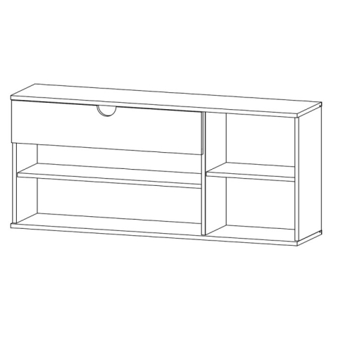 тумба містить одну висувну шухляду і два закритих відділення з полицями всередині |