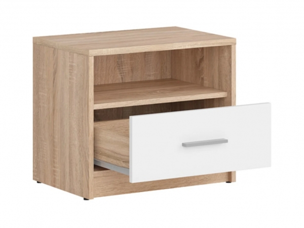Стильна тумба приліжкова KOM1S Непо Gerbor, що дозволяє створити атмосферу комфорту та затишку у дитячій та спальні. Тумба містить одну висувну шухляду і одну відкриту нішу. Тумба приліжкова привертає увагу ексцентричним дизайном та простотою у виконанні; комбінацією корпусу в теплому відтінку "дуб сонома", що імітує зріз натурального дерева з білими фасадами "німфея альба"; правильними геометричними формами та мінімумом декоративного оформлення; стильними пластиковими ручками прямокутної форми, кольору сатин; міцною основа, що сприяють максимальній стійкості; фірмовими комплектуючими: роликовими напрямними SAMET, які забезпечують максимальний комфорт у використанні. Меблі Непо Гербор - органічно впишеться в багато стилів і дозволять створити ефектний і практичний інтер'єр, який виглядатиме свіжо та легко.