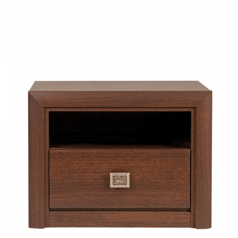 Тумба приліжкова KOM1S Коен Gerbor класика в сучасному виконанні для облаштування спальні. Тумба містить одну висувну шухляду та одну відкриту нішу. Колекція характеризується сучасним стилем і вишуканим виконанням; масивними формами; насиченим відтінком «венге магія»; елегантними квадратними ручками з орнаментом; фірмовими комплектуючими. Меблі Коен Gerbor створять інтер'єр Вашої мрії - функціональний і такий, що привертає увагу.