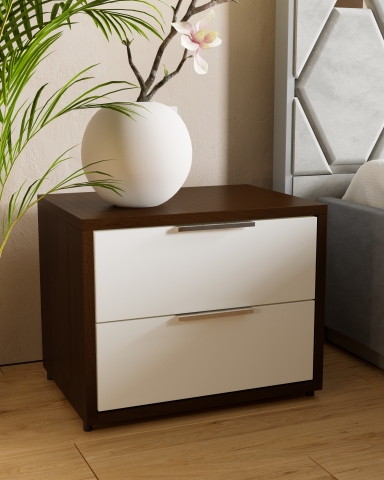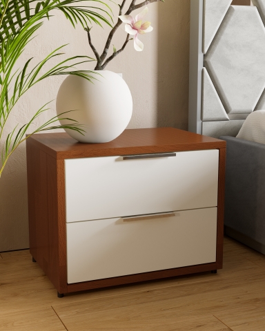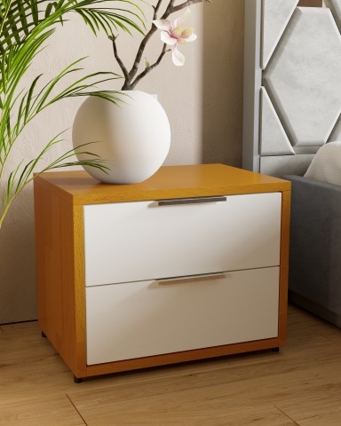 Тумба приліжкова Олівія Арбор Древ з натурального дерева вищого гатунку, виготовлена українською фабрикою Арбор Древ. Тумба гармонійно впишеться в інтер'єр спальні і дитячої, і стане корисним функціональним предметом меблів, що дозволяє розмістити необхідні речі. Внутрішній простір тумби заповнено двома висувними шухлядами. Приліжкова тумбочка виконана з натурального дерева бука або сосни на вибір, і покрито гіпоалергенним лаком італійського виробництва, каркас шухляди - ламіноване ДСП, задня стінка та днище шухляди – ДВП. Головними рисами тумби є сучасний дизайн; оригінальна фактура, виконана самою природою; прості прямокутні форми; довгасті хромовані ручки; фірмові комплектуючі телескопічні напрямні повного висуву.