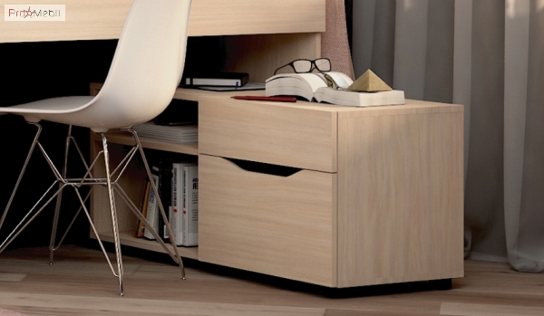 тумба містить одну висувну шухляду, одне закрите відділення і відкриті полиці |