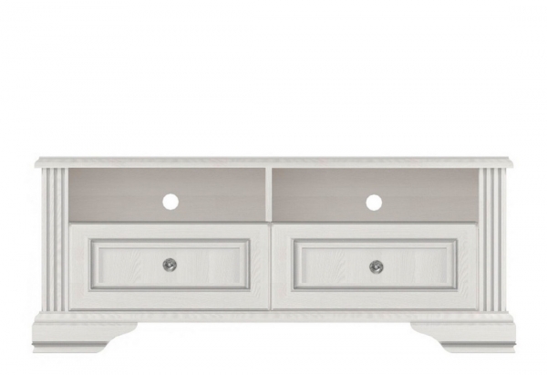 ТВ тумба 2S Вайт Gerbor вдале поєднання класики та сучасності для оформлення вітальні, роблячи простір практичним, затишним та стильним. Тумба містить дві висувні шухляди та дві відкриті ніші з технічними отворами для дротів у задній стінці. Меблі вражають сучасним стилем і вишуканим виконанням; витонченим фрезеруванням фасадів із патинуванням; масивними рамами; декоративними різьбленими карнизами; стильними металевими ручками круглої форми срібного кольору; масивними вигнутими ніжками; фірмовими комплектуючими. Меблі Вайт Gerbor створять інтер'єр, що матиме свіжий, легкий і повітряний вигляд, наповнивши Ваш дім затишком і елегантністю.