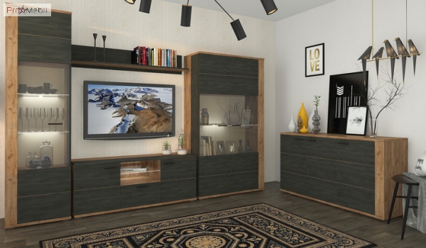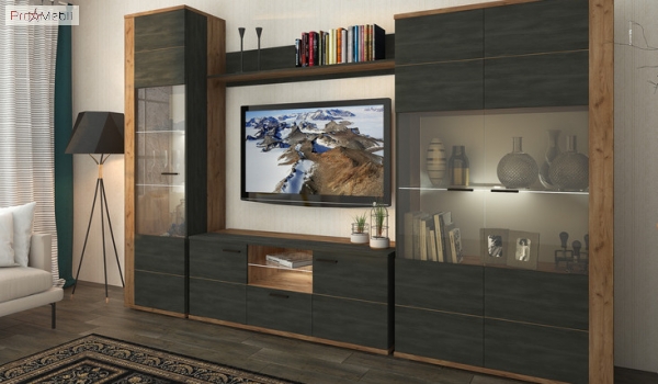 Багатофункціональна і приваблива ТВ тумба 2Д1Ш Адель Сокме вдало поєднує в собі функціональність і незвичайний сміливий дизайн і призначена для облаштування вишуканої вітальні або їдальні. Тумба під телевізор є відмінним рішенням для встановлення телевізора і DVD-плеєра, а також для зберігання, DVD-дисків, пульта, газет, журналів і різних побутових дрібниць, які найчастіше потрібні під рукою. ТВ тумба містить нішу зі скляною поличкою, яка додатково може комплектуватися led-підсвічуванням, одну висувну шухляду та два закритих відділення. Корпус і фасадні частини виготовлені з якісного ламінованого ДСП товщиною 16 мм, в гармонійній комбінації кольорів: "дуб крафт табако / північне дерево". Торцеві поверхні всіх внутрішніх і зовнішніх елементів виробів облицьовані крайкою ABS товщиною 0,5/1 мм, надаючи меблям завершений гарний і доглянутий вигляд. Колекція привертає увагу сучасним стилем; поєднанням двох фактурних відтінків; дизайнерськими довгастими пластиковими ручками; міцною підставою, що сприяє максимальній стійкості; фірмовими комплектуючими: телескопічними напрямними і завісами без дотягу Hafele, які забезпечують максимальний комфорт у використанні. Меблі Адель Сокме подарують вам задоволення і естетичну насолоду і створять в будинку затишне оточення.